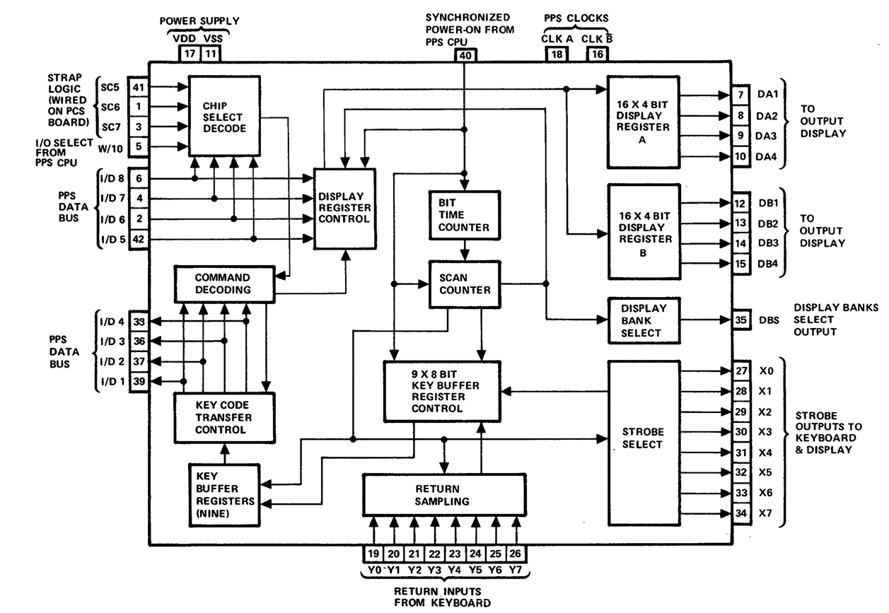 The 10788 is a PPS-4/1 display and keyboard controller. Its synopsis is described on the figure below.